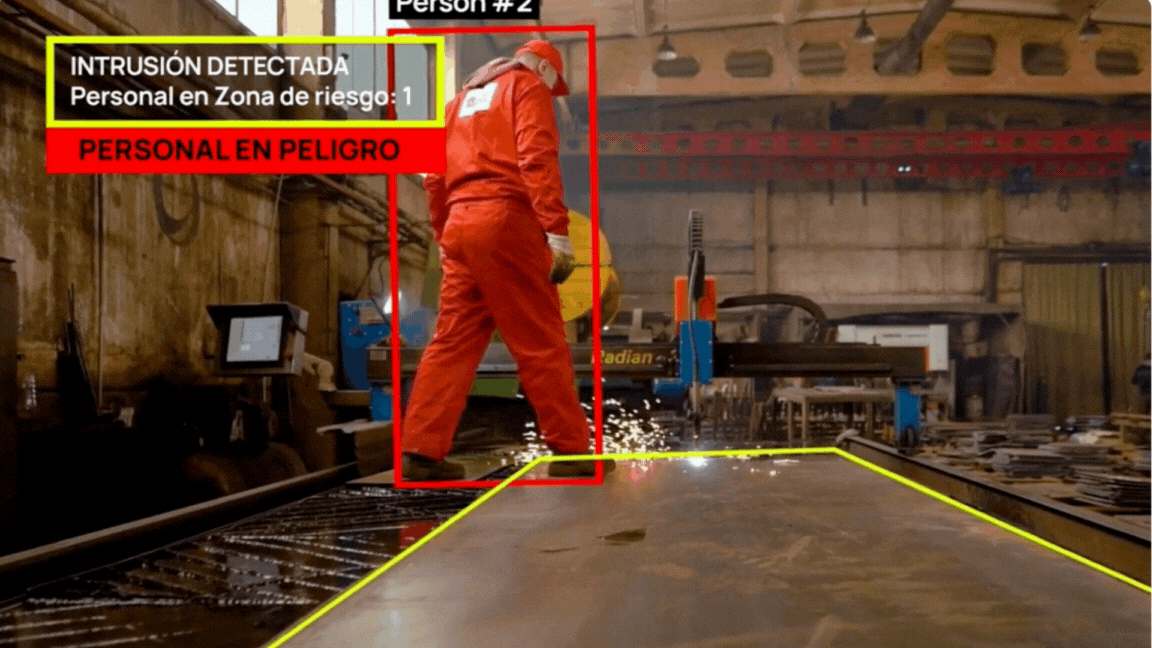 It detects if one of your operators is crossing into danger zones and sends sound alerts to prevent an accident.